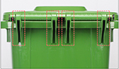四組八條加厚雙點(diǎn)支撐設(shè)計(jì),牢牢固定桶蓋不留縫隙更密封、更堅(jiān)固 -