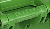 網(wǎng)狀加強(qiáng)筋設(shè)計(jì),桶沿雙層加筋使垃圾桶輕松掛車(chē),不變形,抗沖擊 -