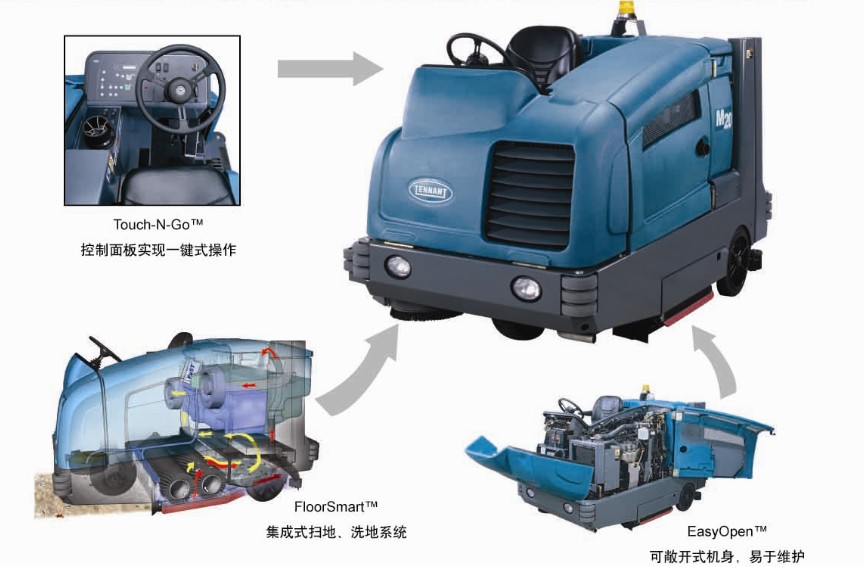 ·室外:坦能掃洗一體機(jī)工作效率高,一次通過可立即干燥地面